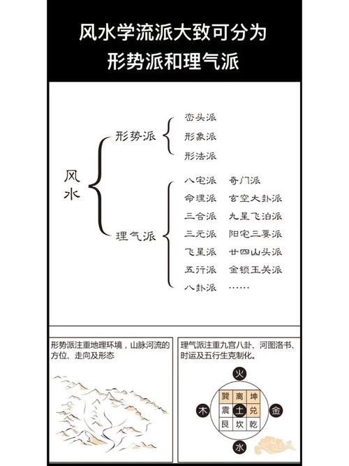 理气派分支极多,影响力最大的包括:八宅明镜、玄空飞星、三合风水以及奇门风水。