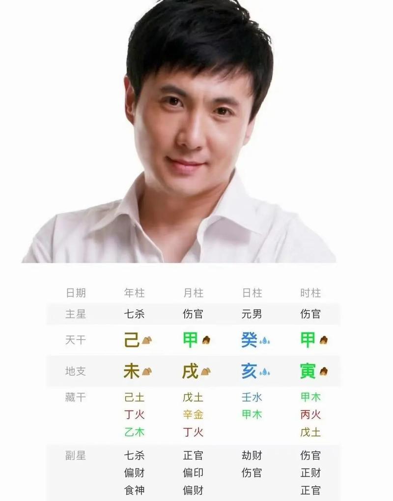 沈腾的命局中,甲木是灵魂、甲木合己土,这种“中正之合”将原本暴戾的七杀转化成了名气和权威、这种转化过程,实际上就是他从一个话剧演员成长为喜剧巨星的过程、甲木作为伤官,代表的是输出,是那种不拘一格的才华。