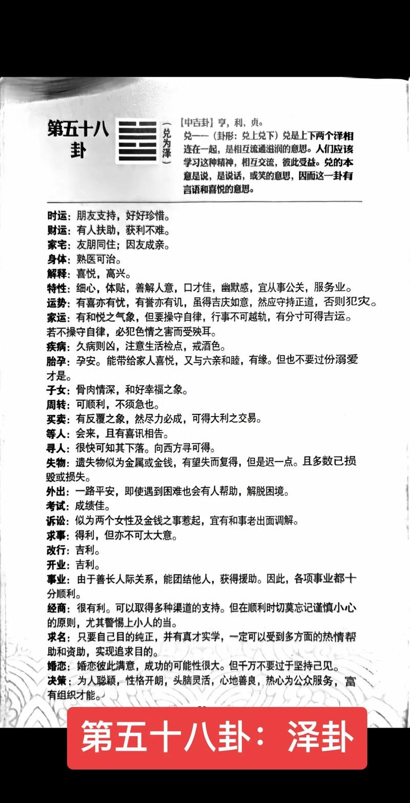 命理不只是预测,更是修身、泽的属性教导我们要有“容人之量”、水聚成泽,是因为它不择细流、在丙午年,社会情绪可能普遍焦躁,每个人都像一团火、如果你能修成“泽”的境界,不仅能保护自己,还能成为他人的依靠。