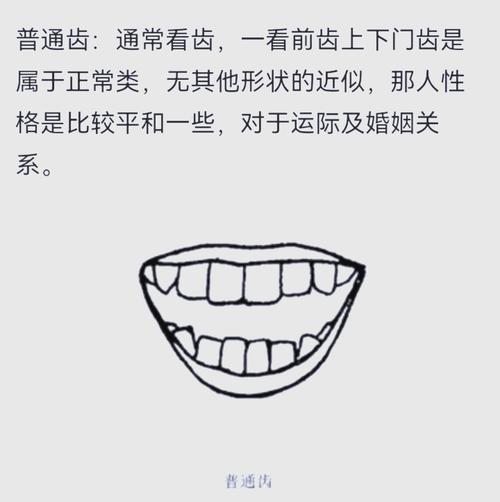 大门牙长得硕大且方正的人,气魄宏大,身体素质优越,这被称为“龙齿”之雏形、这类人通常在职场中具有领导力,能够独当一面、若门牙长而宽,配合牙龈红润,这便是一生衣食无忧的吉相。