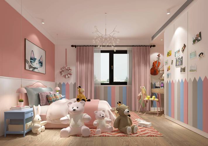 墙面颜色忌讳过于暗沉、深黑色、深紫色会产生压抑感,长期生活在这种环境下的孩子容易胆小怕事、建议采用天然环保的矿物漆,色调宜柔和不刺眼,营造出一种被母体包裹般的安全感。