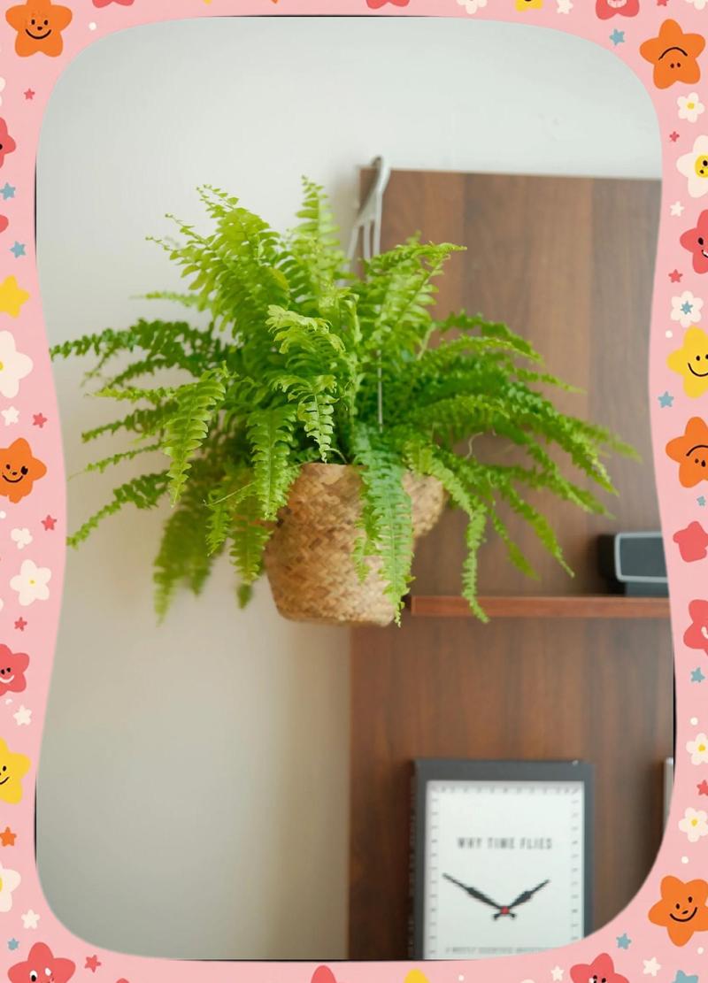 卫生间水汽、秽气集中、在风水学中,植物可以吸收负面能量、波斯顿蕨耐阴耐湿,是卫生间的首选植物、将其挂在通风口附近,可以利用其生命力净化浊气,防止阴气过重影响家人肾脏健康。