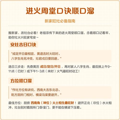 开灶之始,首用红枣、花生、桂圆、莲子熬粥,此谓“撒火种”,意在引动灶位的吉利气场、灶爷诀认为,第一口火的燃起,便是定下了该宅未来十年的禄命基调、在九紫运中,这口火必须旺而不烈,稳而不熄。