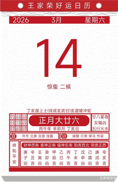 综观二〇二六年三月十四日,庚寅之日,金木交辉,变革与新生并存、其势锐利,其机难得、君子当用其锋芒,以开创事业;避其冲煞,以保身安康、此日非一味平顺之坦途,乃是考验智慧与勇气的关口、善用者,可借势而成事;不慎者,或为其锐气所伤、故行事前,当知己知彼,审时度势,方能趋吉避凶。