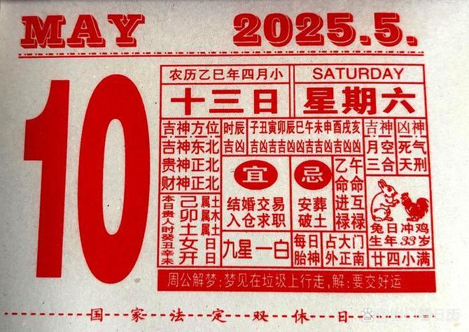 当日冲煞:本日卯兔,与生肖属鸡之人相冲,属鸡者应避开此日。
