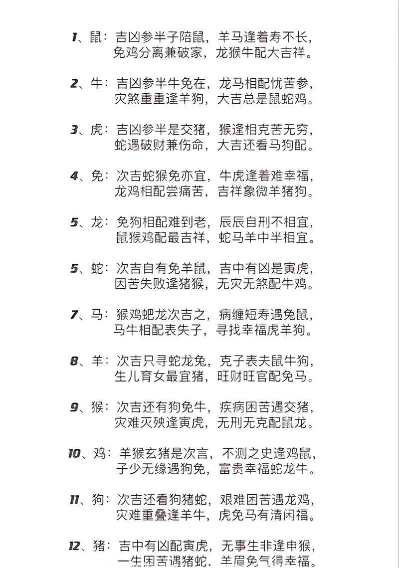 12生肖吉凶配对一览表 12生肖配对表详解
