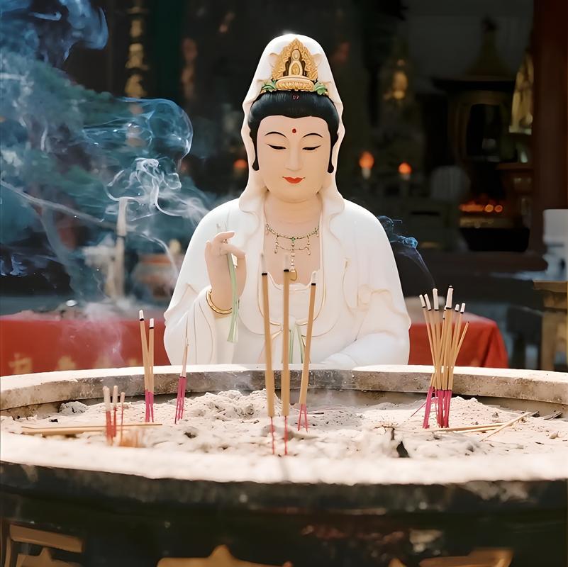 2. 口舌香之预警:若右侧香不仅低,且燃烧时火星四溅,这是典型的“家庭内耗”信号、说明近期家人之间沟通不畅,尤其是夫妻之间或是婆媳之间,存在积压已久的怨气、观音菩萨是以慈悲调和闻名的,这种香象是点化缘主要学会聆听,要放低姿态。