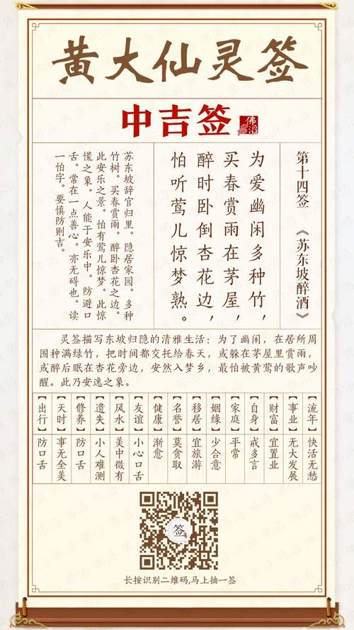 黄大仙第14签解签 黄大仙第100签详细解签