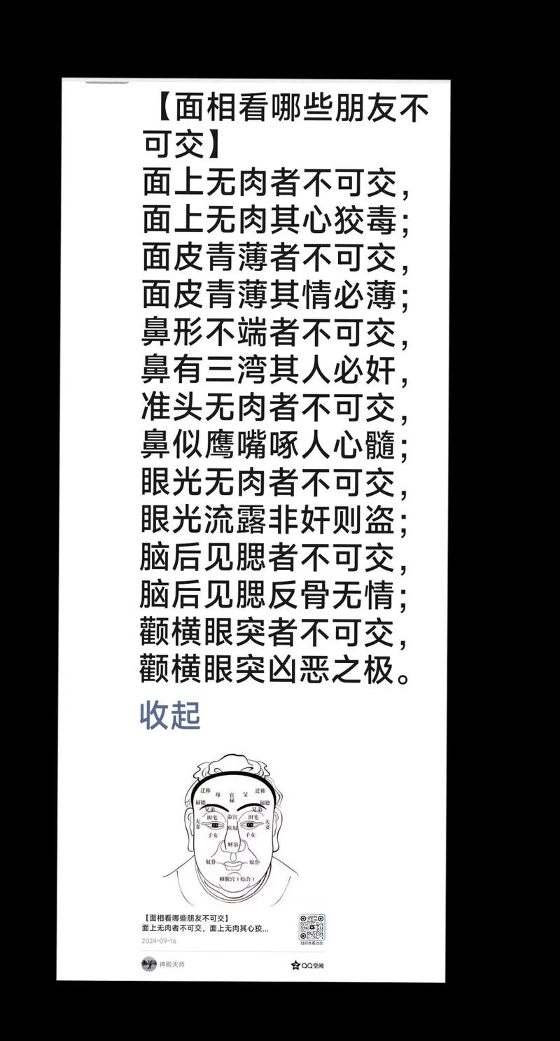 识人,不仅是看他的当下,更是看他的格局、上述九种面相,多带有孤、克、傲、损的特征、在这个瞬息万变的社会,人的气场会互相影响、当你发现身边人出现以上特征时,最好的做法不是去试图感化对方,也不是去拆穿对方,而是保持礼貌的距离,默默地将自己的生活中心移开、你的时间是宝贵的,你的运气是有限的,将它们留给那些眼神明亮、面容平和、处事大方的人。