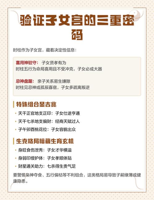 在八字命理学的深度架构中,子嗣不仅是血脉的延续,更是命局中“果实”的呈现、乾坤易理,年为祖上,月为门户,日为自身与配偶,时为子女与晚年、探究一个人命中是否有子、子女成才与否、亲缘深浅,重心皆在时柱、步入2026丙午马年,火气升腾,对于命局中五行流转的调节起到了关键性的催化作用、本文将从宫位、星神、神煞、大运流年及2026年特殊气场等维度,深层次解析八字看子嗣的门径。