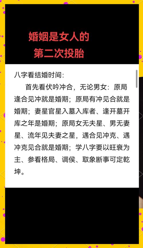对于一些特殊命格,如“从财格”或“从杀格”,其婚期的判断标准与普通命格相反。