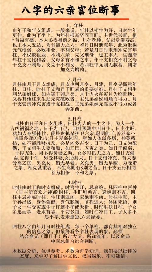 这种推演不应是孤立的,而是联动的、当日柱受损,受损的不仅仅是命主和配偶,还会向上波及父母的忧虑,向下影响子女的成长、这种全息的、动态的观察视角,正是八字命理学断六亲的高阶境界、通过对宫位的深度剖析,我们不仅能断准六亲的吉凶,更能洞察家族命运的流转与因果。