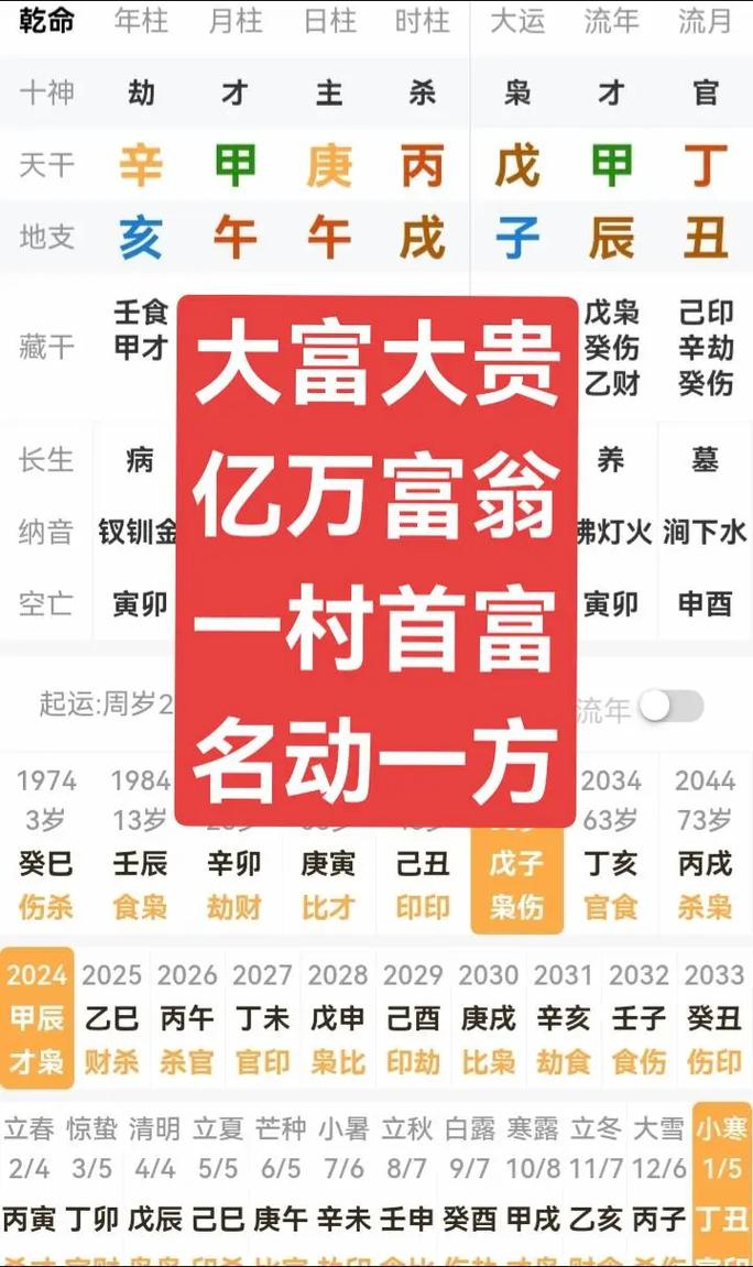万亿财富的八字中,偏财往往透出天干,且地支有强根、偏财代表的是一种格局观和野心、具备这种八字的人,目光不会局限于一城一池,而是全球化的资源配置。