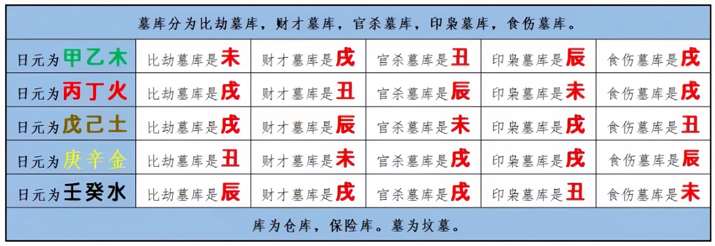 财库是大众最关心的焦点、命书云:“墓库喜冲不喜合,冲开财库发如雷、”若命局中这两个墓库恰好是财库,其造富能力往往惊人、例如,壬水日主,见戌、未为财官之库、若八字中有两个这样的财库,且能在岁运中逢冲(如戌见辰冲,未见丑冲),则主大富、冲也要讲究力度、冲得过重,库倒屋塌,钱财散尽;冲得太轻,库门紧闭,看得到摸不着、两墓库之人,大多有存钱的习惯,且极度缺乏安全感,非要见到存折数字不断攀升,内心方能安稳。