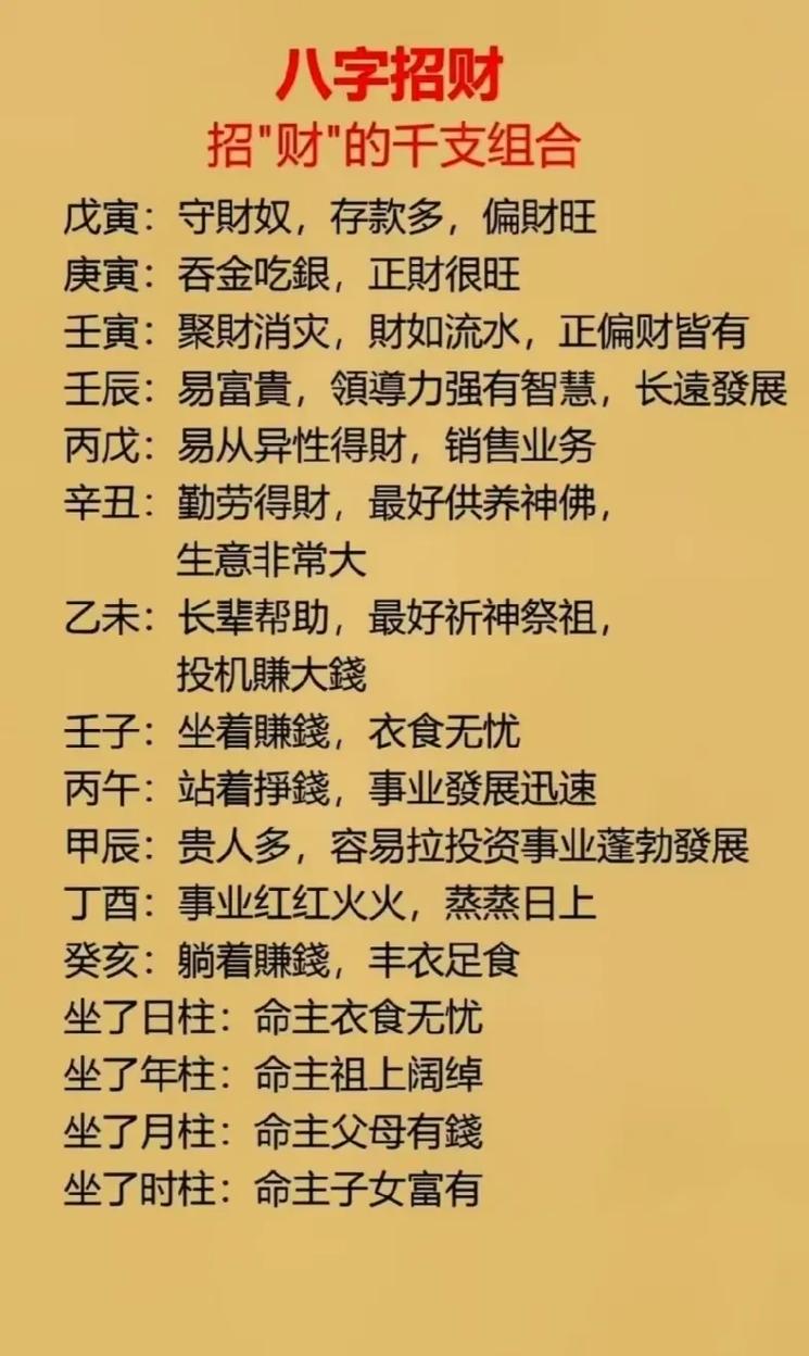 在八字命理学的浩瀚殿堂中,“合”是一种极具魅力的象义、它代表了吸引、亲近、占有以及某种不可言说的缘分、天干五合——甲己合、乙庚合、丙辛合、丁壬合、戊癸合,是天干之间阴阳交感、情投意合的表现、当这种“合”发生在中和日主与财星之间时,便构成了命理学中常说的“天干合财”。