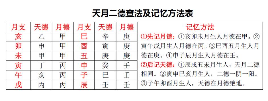 八字算命怎么看天月二德表 八字疗法对应表