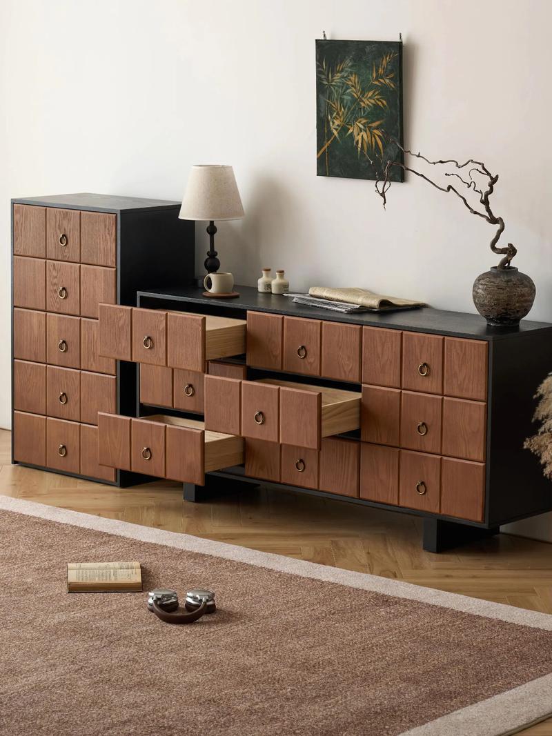 斗柜,形似古时的“斗”,在古代是计量的工具,亦是财富的象征、风水学认为,凡是带抽屉的家具,皆具“聚宝盆”之属性、抽屉的开合,寓意着财富的进项与沉淀、柜体的高矮、层数、方位,构成了一个微观的能量场。