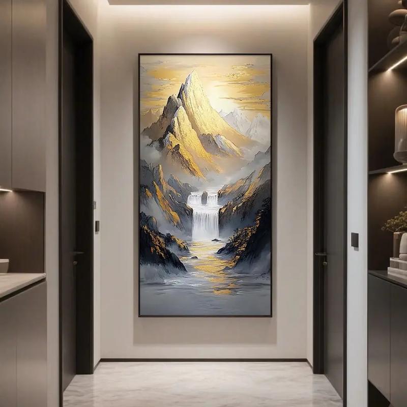 玄关过道若过深,或者正对下楼梯,会形成“漏财”格局、此时需要一幅气势雄浑的《泰山图》来镇宅、山为靠山,泰山作为五岳之首,具有极强的辟邪化煞作用。