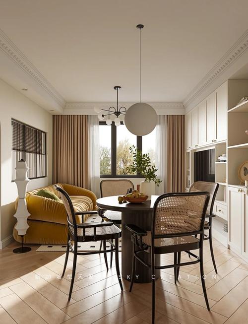餐厅区则建议使用防滑、易清理的硬质地面、通过材质的切换(如地板与瓷砖的拼接),在潜意识里划定了空间的边界,从而在无形中截断了气流的一往无前。