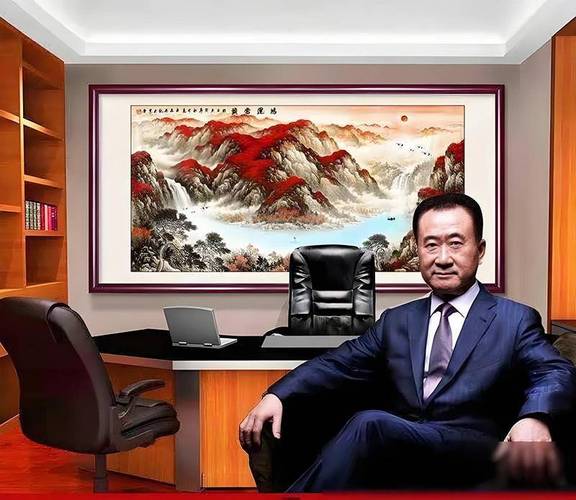 风水不只是画的内容,还有画的物理属性、王健林这幅画的尺寸通常是巨大的,横向几乎延伸到整面墙的边缘,纵向则高耸入云、这种比例在心理学上会给进入房间的人一种压迫感,在风水上则被称为“大局观”。
