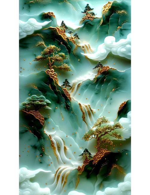 山水纹样:玉石中若自带山峦起伏、云海翻腾的纹理,是极佳的“山水有情”局、山管人丁水管财、这种纹理的背景墙应当挂在“生旺”方位,山势要连绵有情,不可尖锐突兀、山峰高耸代表后代有出息,贵人多助;水流环抱代表财源广进。