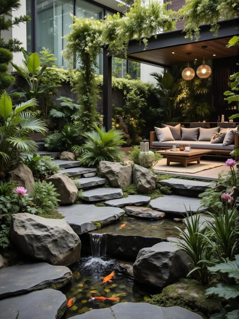 活水为佳,缓流不积: 庭院中的水景,最好是活水,如流动的小溪、鱼池、活水代表生生不息的活力,能催旺财运、死水或 stagnant water 容易滋生细菌,产生秽气,对健康不利,也不利于财运、水流不宜过急,以免形成“泛滥”之象,不利于聚财。