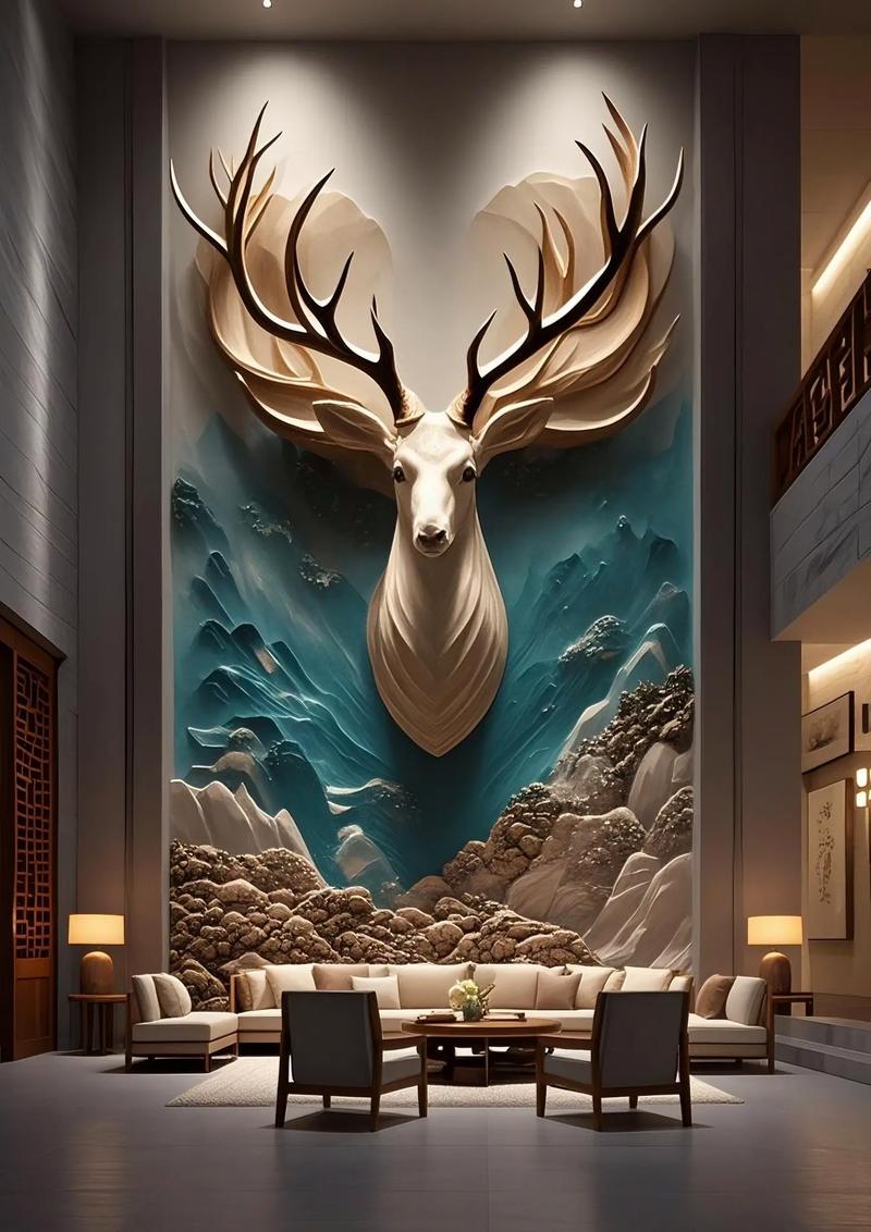 如果室内光线较暗,则可选用米白色或浅木色的鹿头,以增加空间的“明亮度”,提升气场的活跃度、墙面的底色亦有讲究,浅绿色墙面配木色鹿头,构成“同根同源”的木气场,对职场新人或正处于事业上升期的人士尤为有利。