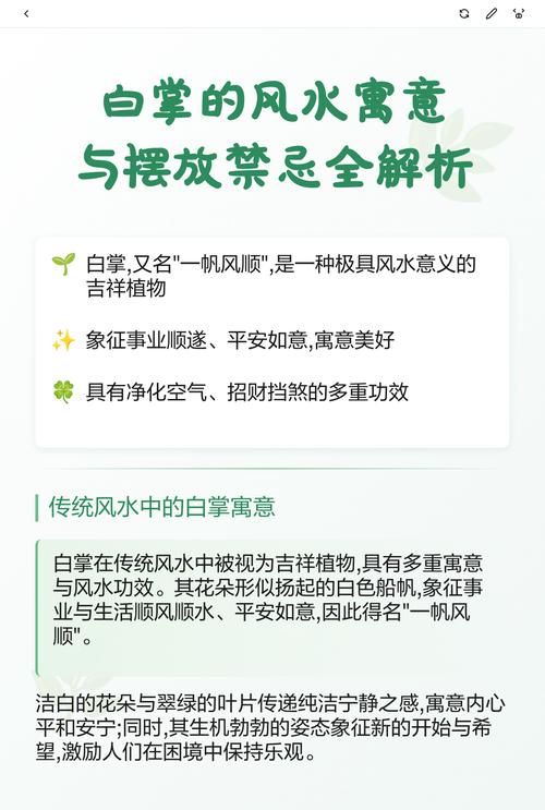 如果白掌长期处于阴暗角落,其叶片会变得暗淡,这代表家里的人际关系变得冷漠、风水是活的,人的关注和植物的生长是同频共振的、每天擦拭白掌的叶片,去除尘垢,实际上是在清理自己的心镜、叶片亮,财路明;花朵正,人心顺。