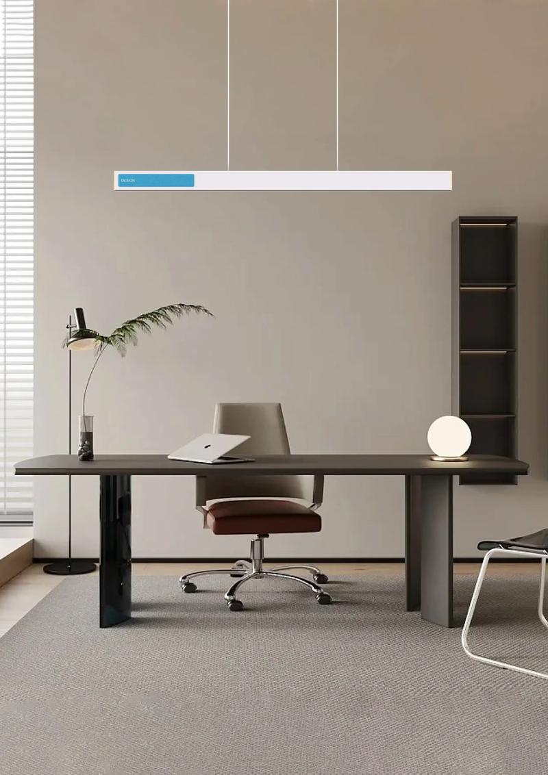 最好的做法是在老板桌的前方左右两侧设置高杆落地灯,灯头微向下俯冲,形成“双龙戏珠”之势、光照度要高于员工办公区,体现权威感、色温建议保持在4000K,既能保证头脑清醒,又不失温和的领导气质。