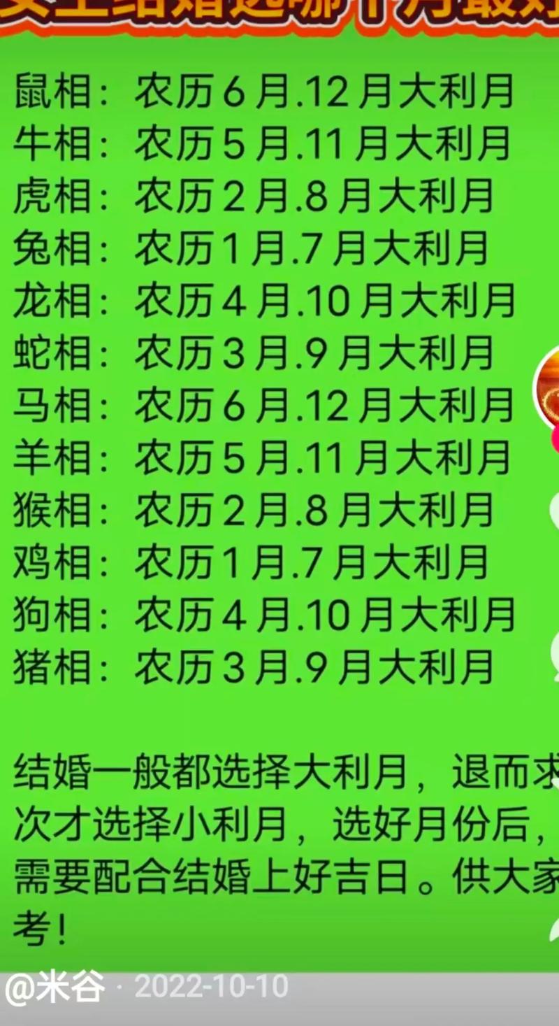 属猴的新娘:大利月在农历二月、八月;小利月在农历三月、九月。