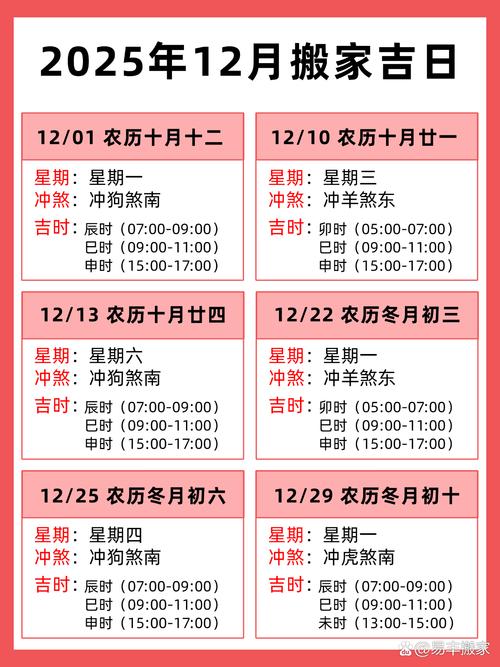 择日时,应优先避开与户主及家人生肖相冲的日子、例如12月3日冲虎,家中若有属虎之人,则此日不宜作为搬家首选、以户主生肖为重,若无法避开所有家人,至少要确保户主生肖不犯冲。