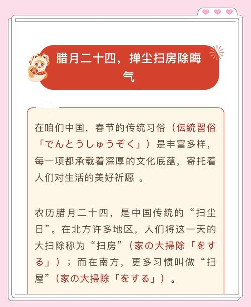 1. 避开极端节气: 腊月中的重要节气如冬至(公历2026年12月21日左右)和腊八(公历2027年1月7日左右)、冬至是一年中阳气初生之时,宜静养,不宜大动干戈;腊八则是祭祀和进补的日子,也有其特殊意义、在一些传统观念里,冬至前后的“扫房”也是可以的,关键在于扫除的“心意”和“方式”。