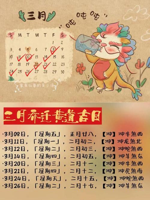 属龙者: 壬辰月是属龙者的“自刑”月份,且与2026年午火并无直接冲突、4月搬家重点在于避开壬戌日,即冲龙之日、厨房灶位先行点火,象征生活红火。