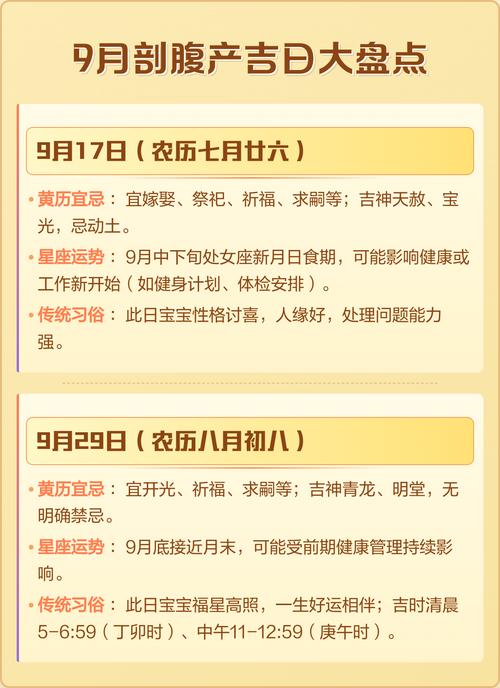 综合以上要点,现将2026年9月(农历八月)间,较为适宜剖腹产的吉日筛选罗列如下,供各位准父母参详。