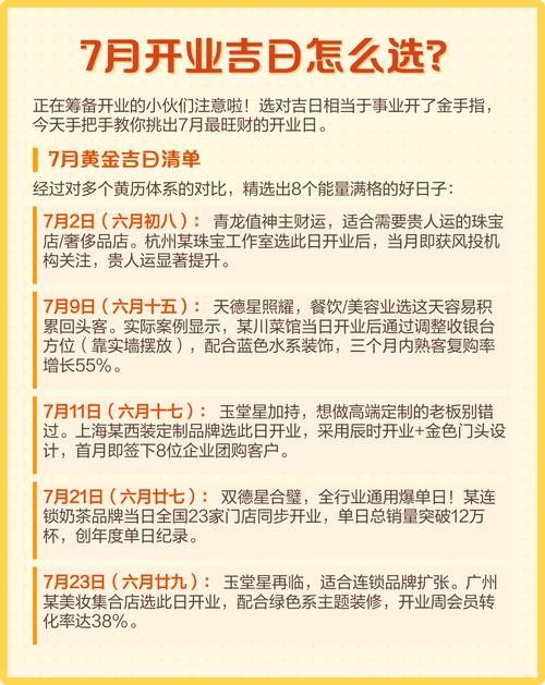 2026年七月开业吉日一览:择良辰,启鸿运,财源广进