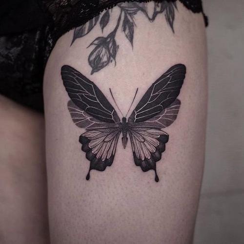 若想补阴: 将蝴蝶纹在大腿内侧,用深色调、这能收敛火气,让你在急功近利的社会中保持一份清醒与宁静。