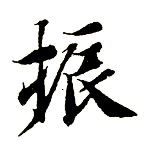 观察“振”字的结构,会发现其右侧“辰”字的撇捺延伸,给予了文字极大的支撑力。
