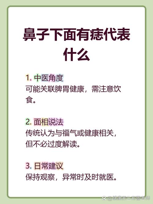 对于从事财务、科研、档案管理等严谨行业的人,鼻孔下方的痣如果过于显眼,反而可能带来干扰、这类人讲究严丝合缝,鼻下之痣若代表“漏”,则容易在数据或细节上出现疏漏、2026年火气干扰思维,此类从业者应考虑通过佩戴开运饰品或调整办公位风水来化解。
