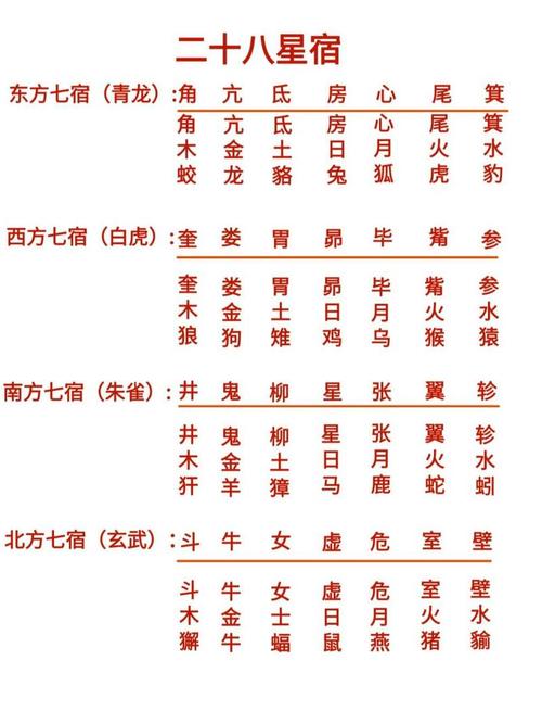 为了方便读者在日常生活中快速查阅,以下将二十八宿按性质分为四类。