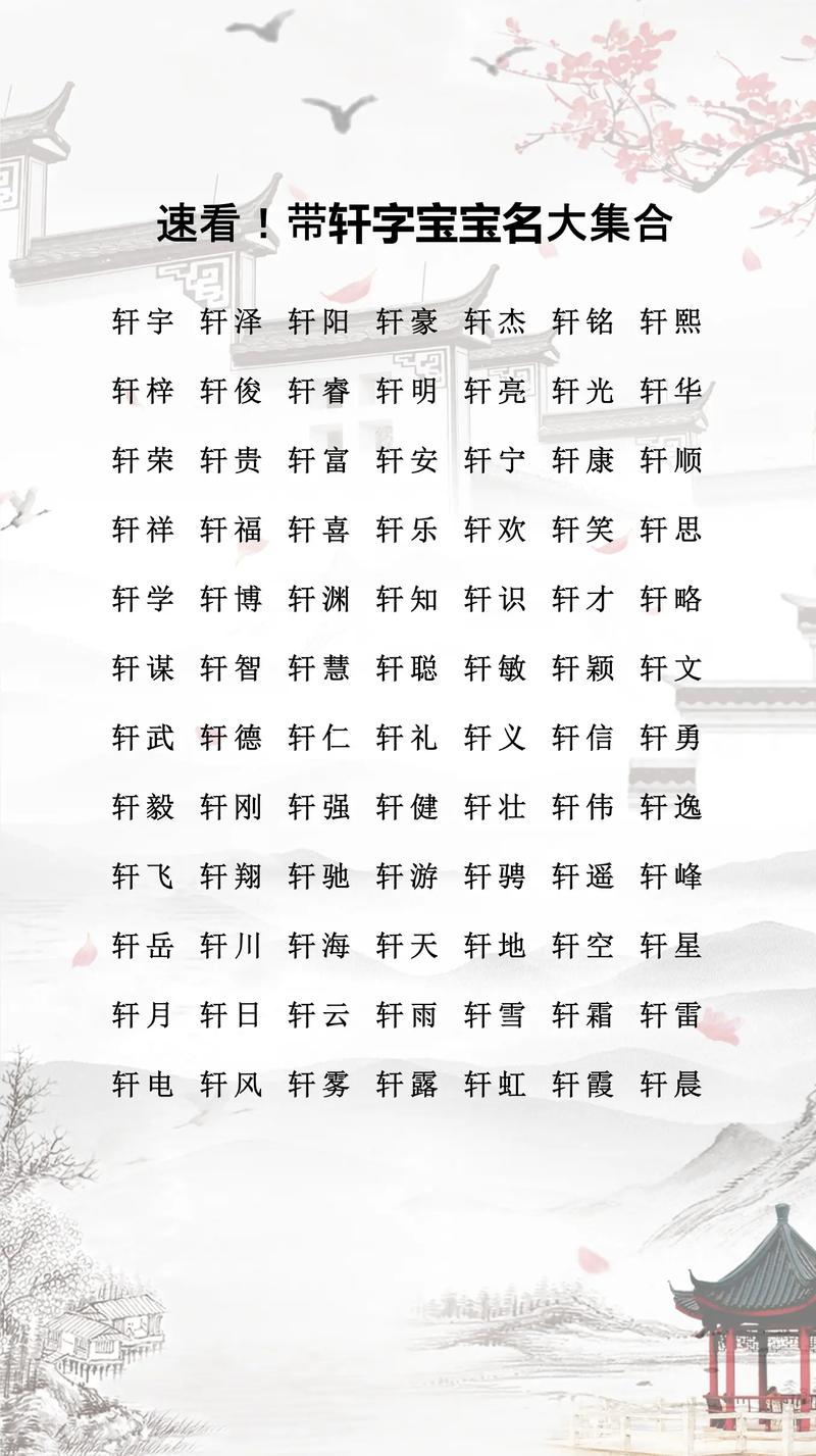 3. 考虑性格互补: “轩”字带有一定的傲气,如果孩子本性内向、自卑,这个名字能助其提升自信;如果孩子本身就顽劣、目中无人,这个名字可能会助长其狂妄之势。