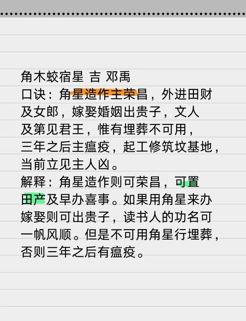 在实际应用中,不仅要看宿值,还要结合当天的干支、例如,若角宿值日,且当天干支为壬水、癸水,水能生木,这便是“上吉”之日,水火既济,万事易成、若当天干支为庚金、辛金,金克木,则角宿的威力受阻,做事容易出现波折,宜静不宜动。