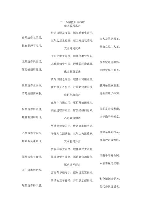 教你二十八宿吉凶歌诀 二十八宿速查表