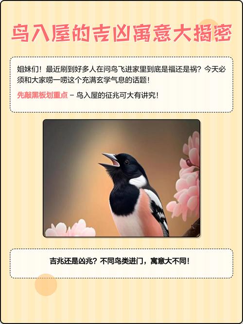 鸟类入宅的吉凶并非孤立存在,它与屋主的个人运势、家宅装修色调(2026年忌大红大紫过度堆砌,宜用浅色调和)、以及居住者的心态息息相关、在丙午马年,面对这些带羽毛的生灵,保持一颗敬畏与平和的心,便是最好的风水布局。