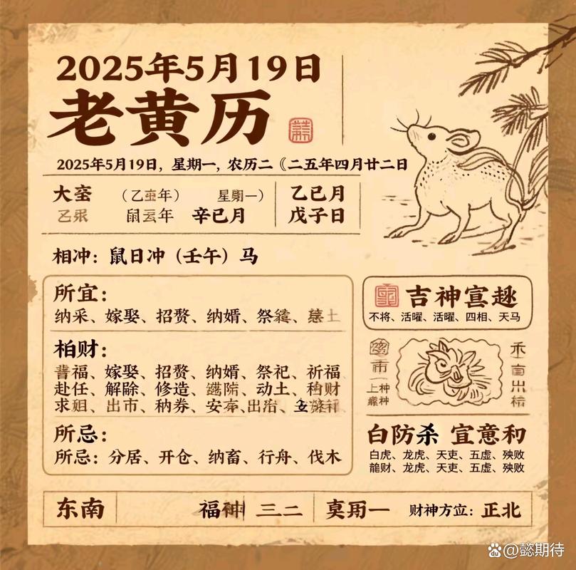 翻开黄历,先看干支是否与自身生肖刑冲,再看建除十二神是否对应所办之事,最后看冲煞方位与纳音强弱、这一套流程下来,生肖吉凶自然了然于胸、这不是迷信,而是古人对时空节律的精准捕捉,是每一个生肖在宇宙能量场中寻找最舒适位点的智慧、在火旺之年,保持内心的清凉与克制,配合黄历的指引,方能逢凶化吉。