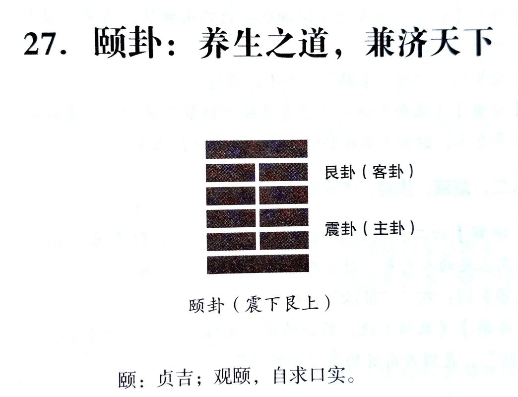 易经第六十四卦中,第二十七卦为“山雷颐”、此卦卦象为艮在上、震在下,上山下雷、从字形上看,颐卦外实内虚,上下两个阳爻,中间四个阴爻,形似一张张开的嘴、在易理中,“颐”代表养育、颐养、饮食及言语、问及健康吉凶,此卦的核心旨归在于“自求口实”与“审谛营养”。