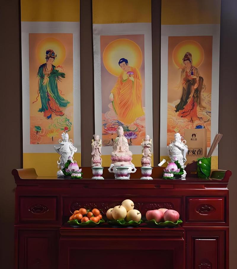 家中若同时供奉佛祖与观音,必须明确主次与尊卑、佛祖(如释迦牟尼佛、阿弥陀佛、药师佛)地位最高,应居于中心或最高处、观音菩萨作为大愿随从,通常位于佛祖的左侧(观者的右侧)。