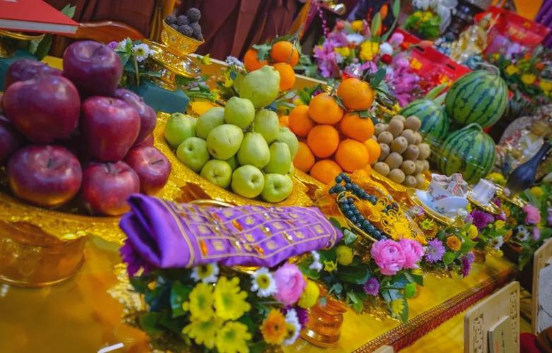 在摆放方式上,要讲究“前低后高,错落有致”、如果供奉五样水果,可以将最圆大的放在中间,其余四样环绕,形成“众星捧月”之势、每一盘水果的数量也应为奇数,通常是三个或五个。