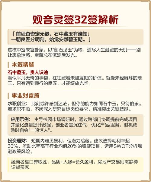 在2026年的红尘浪潮中,愿每一位求签者都能通过这三十二签的微言大义,找准定位,顺应天时,在丙午年的烈火中,淬炼出属于自己的精彩人生、无论前路是花红柳绿,还是披荆斩棘,保持内心的慈悲与清净,便是最有力的避风港。