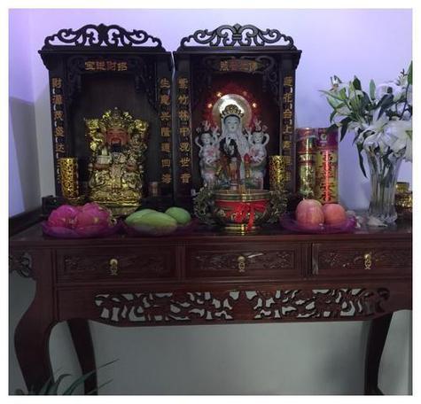 神台的高度必须过胸、理想的高度是神像的眼睛与供奉者的视线平齐或略高、观音神位后方必须是实墙,寓意有靠山、如果墙后是厕所或楼梯,则必须通过加装隔板或屏风进行化解。