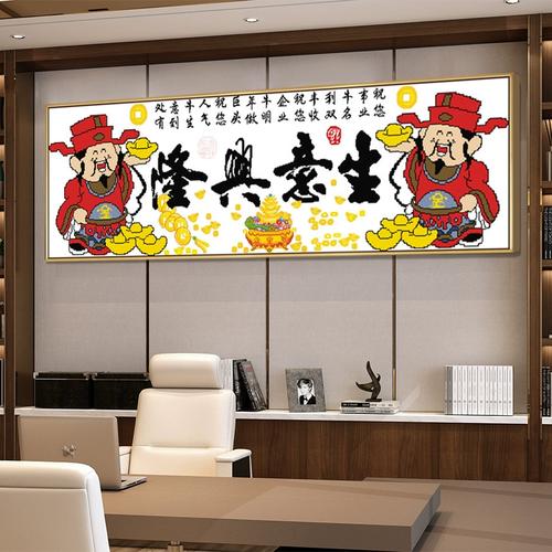 理想的比例是十字绣占所在墙面面积的三分之一左右、横幅十字绣(如五路财神、八仙过海)适合挂在收银台后方的背景墙;竖幅十字绣(如关公立像、财帛星君)适合挂在进门可见的侧位照壁。